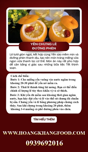 Công ty TNHH Đầu tư Sản xuất Hoàng Khang Food là đơn vị chuyên sản xuất, kinh doanh các sản phẩm từ yến sào, đặc biệt là nước yến sào cao cấp. Xuất phát từ vùng đất Bạc Liêu – nơi nổi tiếng với nghề nuôi yến, Hoàng Khang Food đã nhanh chóng khẳng định uy tín và chiếm được lòng tin của người tiêu dùng trên thị trường...