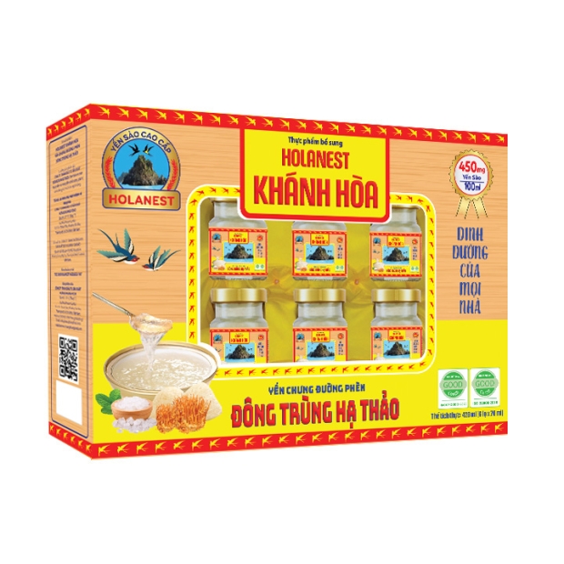 HOLANEST KHÁNH HOÀ YẾN CHƯNG ĐƯỜNG PHÈN ĐÔNG TRÙNG HẠ THẢO (HỘP 6 LỌ)